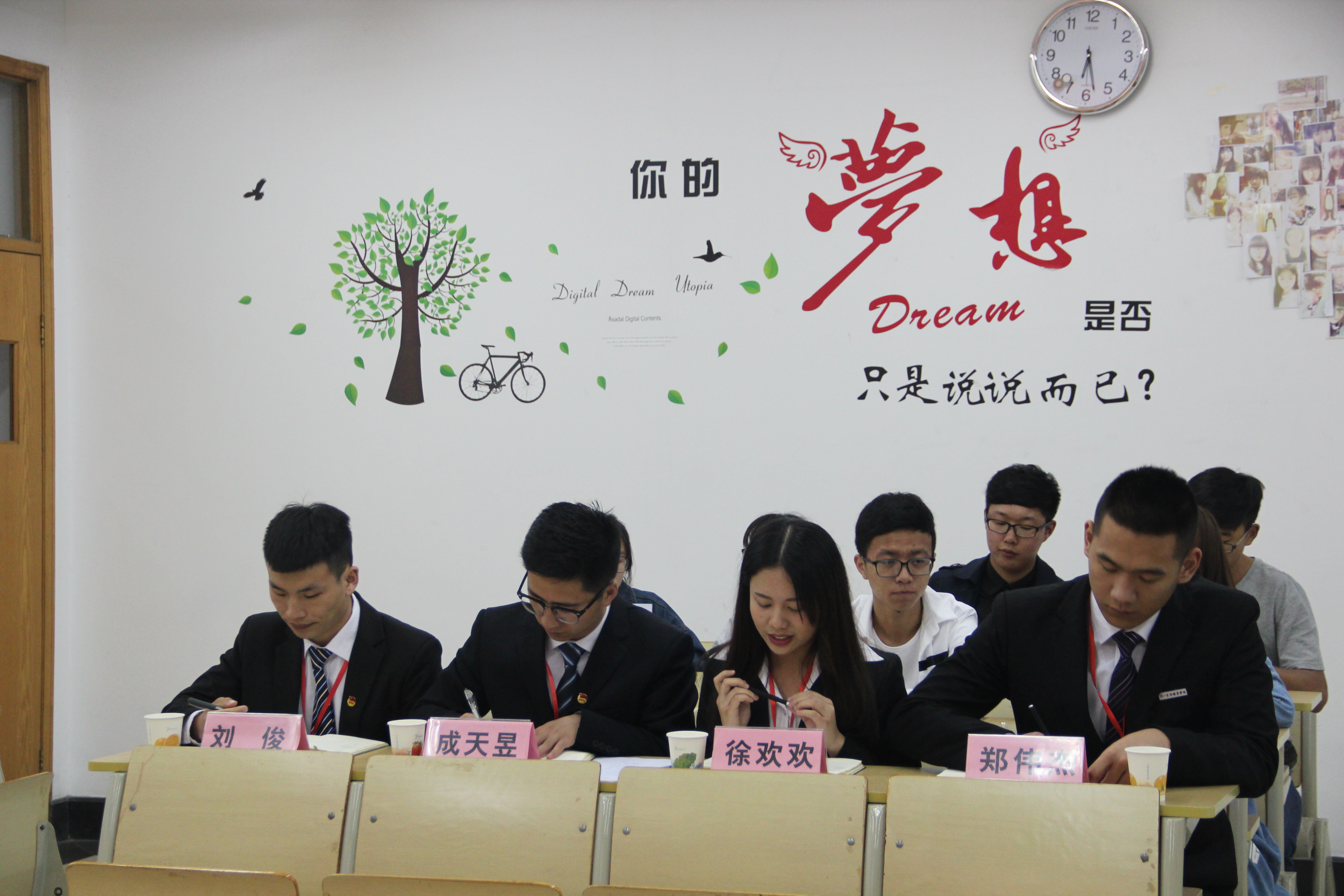 会议开始前,在郑文成等金融系团总支学生会成员的带领下,经管系团总支学生会的代表们参观了金融系银雁班的课堂状况和8号楼二楼及三楼的金融系文化橱窗。会议伊始,由两系部长和代表分别介绍自己及部门的工作情况、部门特色、部门机制及自己对本部门的看法。而后双方学生自述了自己在学习、工作生活方面的情况并提出问题与大家一起相互解答,现场气氛很是融洽。