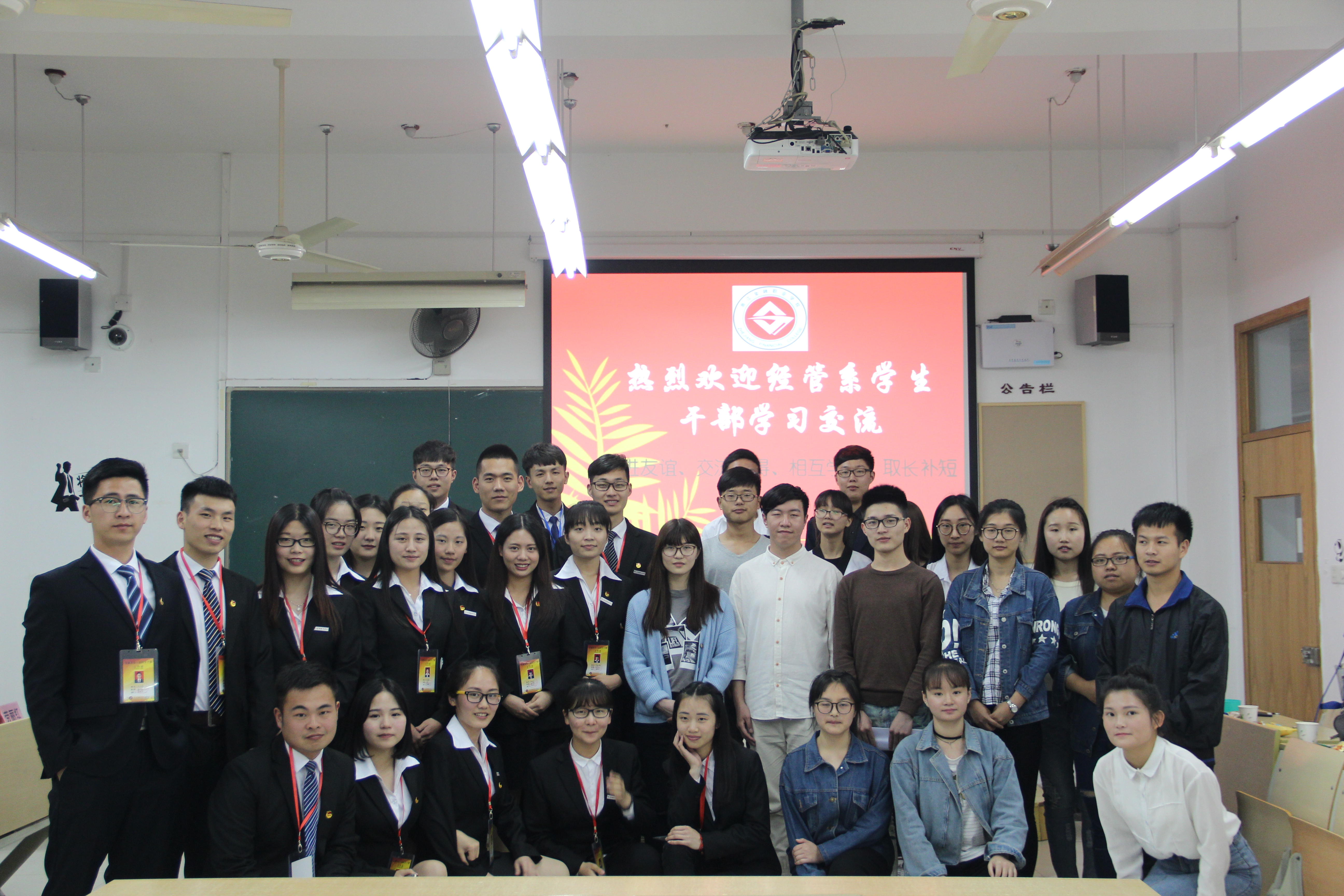 在活动结束后,所有人进行合影留念,此次交流会最终落下帷幕。本次交流研讨会的举行为两系学生干部提供了一个良好的学习交流平台,通过两系学生的交流和互动,激发了学生进步向上的斗志,让本次两系学生文化交流研讨会“促进友谊、交流心得、相互学习、取长补短”的主题得到了最好的升华。