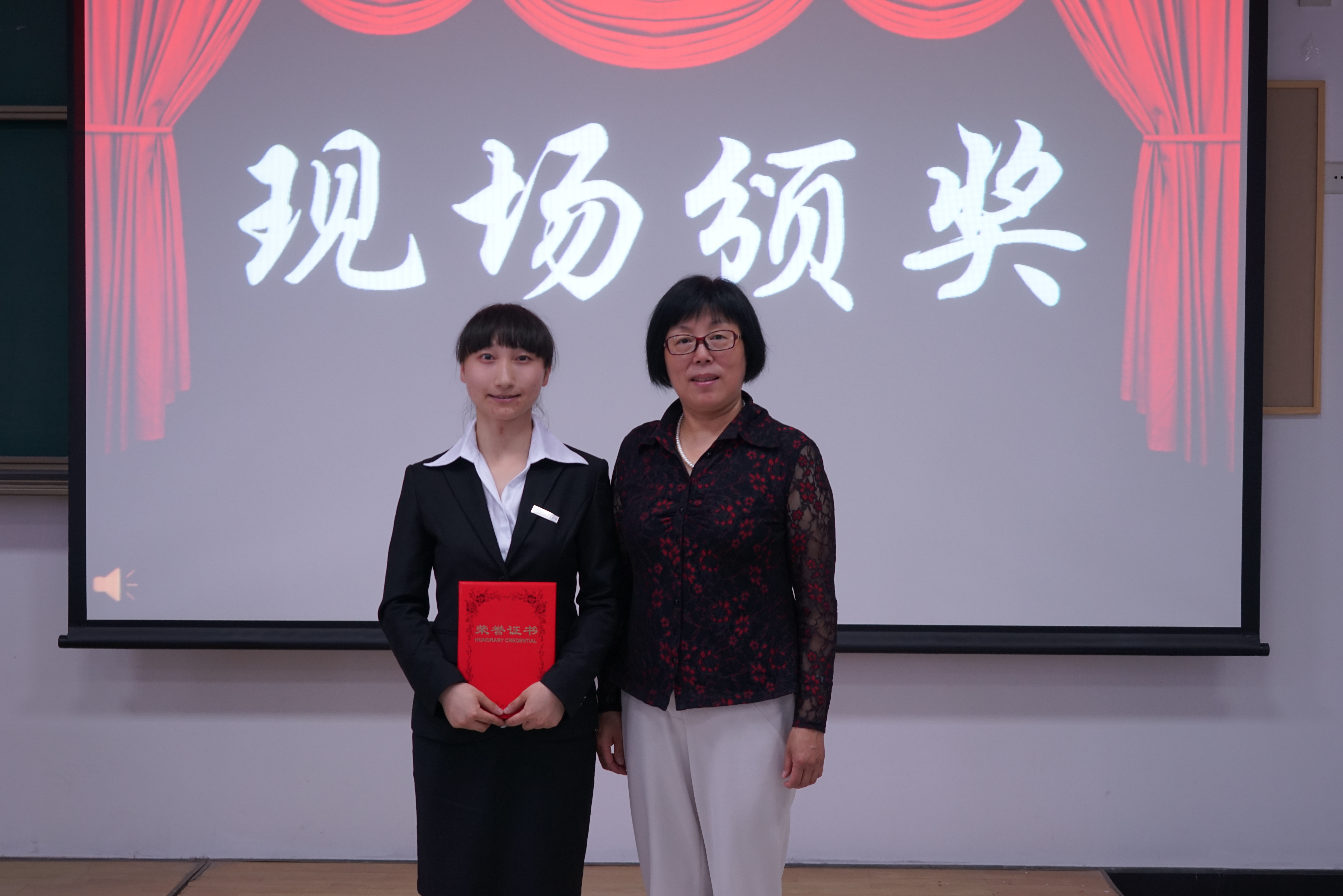 金融系党总支书记熊秀兰为特等奖获得者罗雅丽颁奖