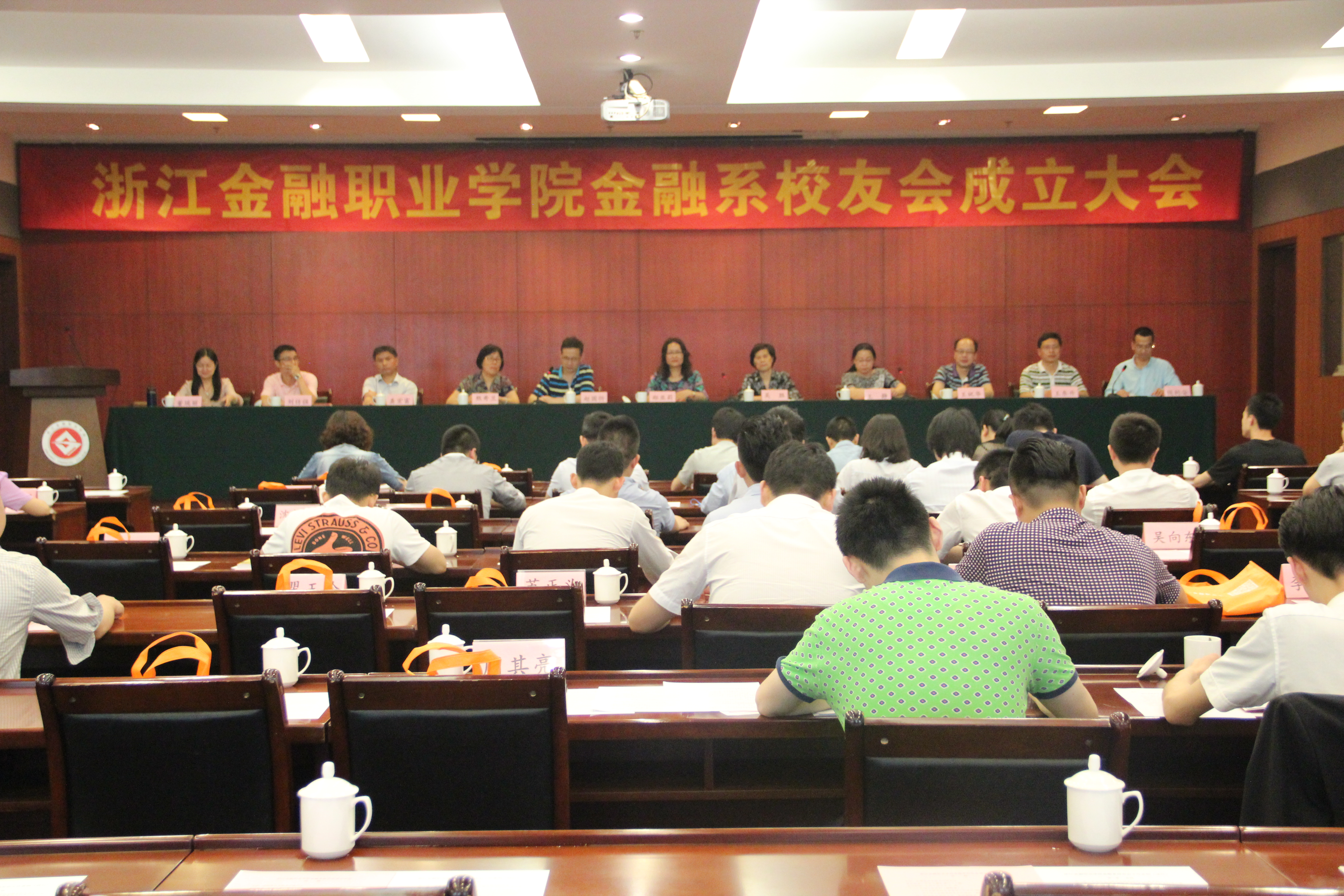 为进一步做好、做强校友工作,完善校友工作机制和组织建设、完善校友信息建设,为更好地发挥金融系校友在学院“行业、校友、集团”共生态办学模式中的重要作用和力量,金融系于6月8日在汇丰大厦汇通厅隆重召开浙江金融职业学院金融系校友会成立暨第一届会员代表大会。应邀出席本次大会的领导有学院院长郑亚莉教授,副院长吴胜教授,金融系主任赵国忻教授,金融系党总支书记熊秀兰,投资与保险系主任、书记(原金融系主任)王静教授,院纪委副书记、纪检监察办公室主任(原金融系党总支书记)龚宏富教授,学院办公室副主任、外事办主任(原金融系党总支副书记)刘仿强,银领学院党总支书记(原金融系党总支副书记)王祝华,学院合作发展处副处长、校友办主任王东升,金融系副主任董瑞丽教授,金融系党总支副书记钱利安。参加本次大会的还有金融教研室主任金晓燕教授、国金教研室主任李敏、农金教研室主任凌海波、金融系办公室主任王娟、学工办主任王立成、班主任代表汪卫芳教授、金融系校友办苏浩老师以及校友代表。大会由金融系党总支副书记钱利安主持。