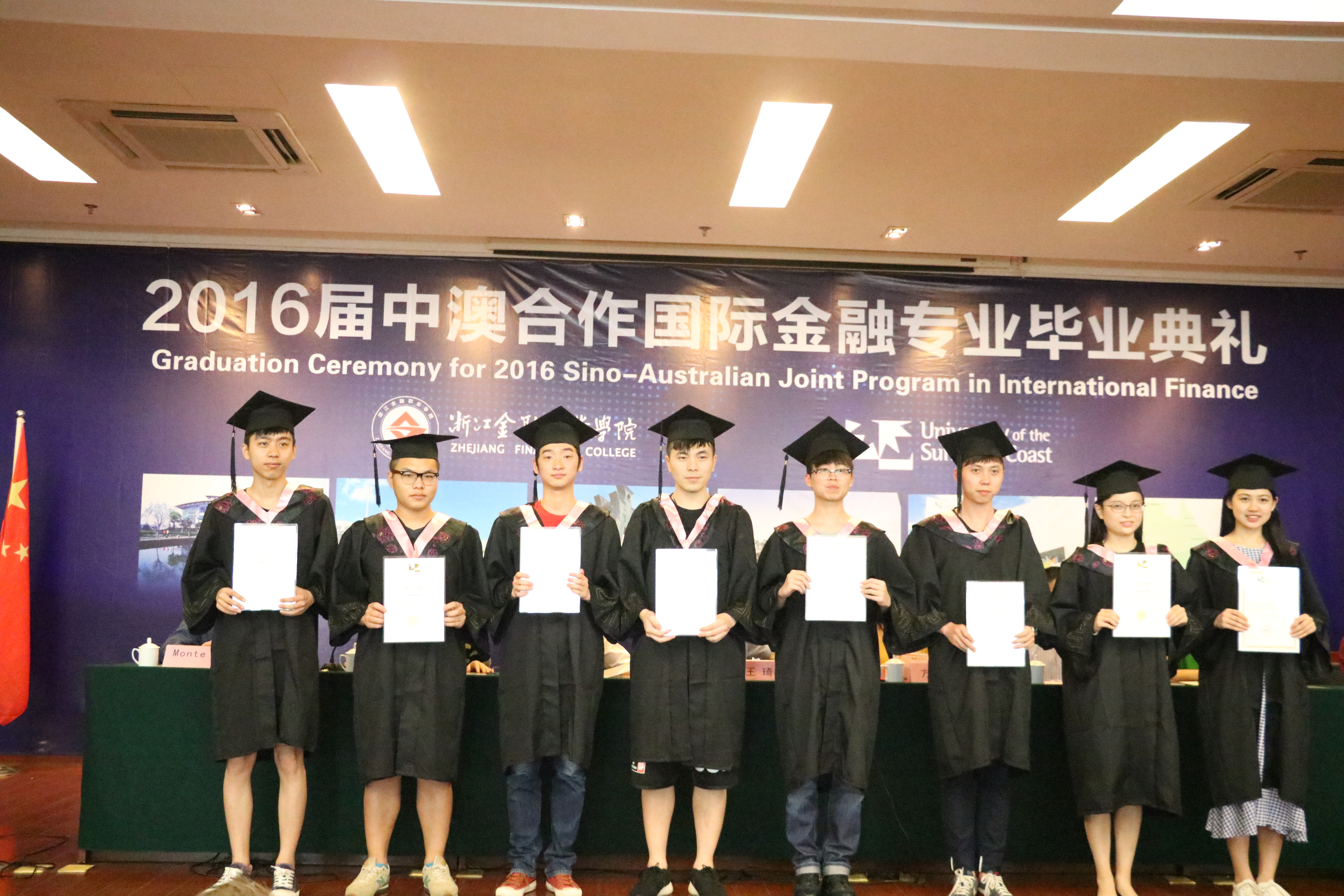 6月16日下午,金融系在汇丰大厦汇通厅隆重举行2016届中澳合作国际金融专业毕业典礼。出席本次毕业典礼的领导有学院副院长王琦、副院长方华、院长助理郭福春、学院外事办主任刘仿强、金融系主任赵国忻、金融系党总支书记熊秀兰、金融系副主任董瑞丽、澳大利亚阳光海岸大学商学院学术委员会副主任Monte教授。国金专业教师、澳大利亚阳光海岸大学教师代表、澳大利亚高等教育联盟代表以及全体国金专业16届毕业生参加。毕业典礼由赵国忻主持。
