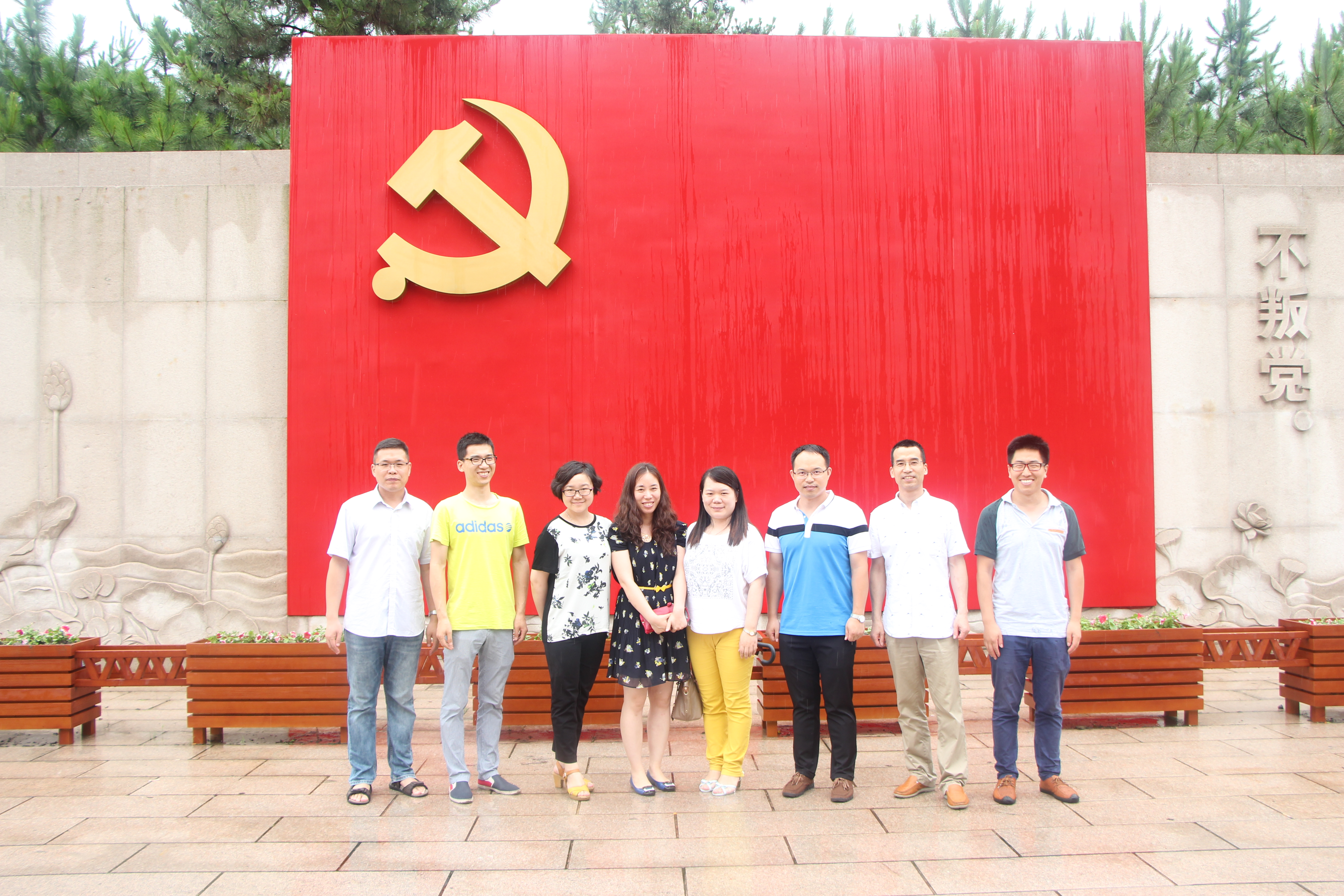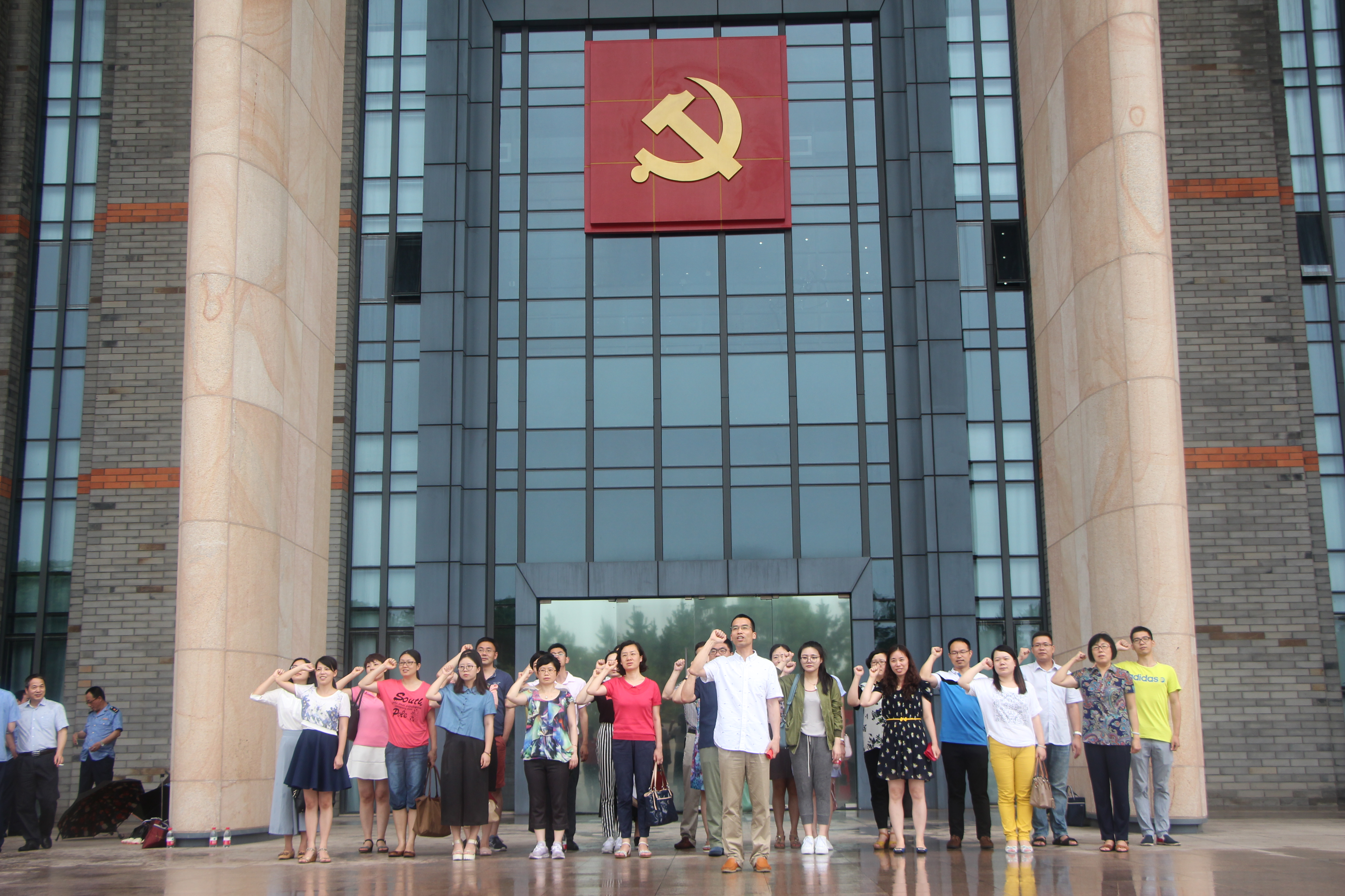 1921年8月初,中国共产党第一次全国代表大会在浙江嘉兴南湖的一条游船上胜利闭幕,庄严宣告中国共产党的诞生。这条游船因而获得了一个永载中国革命史册的名字——红船。本次金融系教工党员活动秉承着“追寻红船足迹,重温入党誓词,发扬红船精神,争当时代先锋”的理念进行开展。尽管天气有些恶劣,金融系教工党员依旧克服困难,在嘉兴南湖革命纪念馆的宣誓墙前庄严宣誓,重温入党宣誓词,坚定自我的理想信念。
