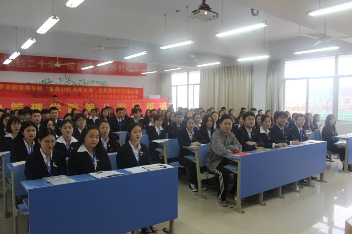为了帮助银雁班学员们更好的了解学生会工作,规划未来就业方向。金融管理学院于3月27日下午在8405教室举办了2019年春季金融管理学院“金鹰引航朋辈互助”之优秀校友话就业讲座。出席本次讲座的有学工办副主任宋春旗及第八期银雁班全体学员。本次讲座的主讲人为金融管理学院16届优秀校友周其亮。