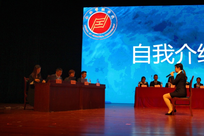 比赛正式开始,14位参赛同学在现场进行了无领导小组讨论,同学们拿到资料认真地思考得出观点后,都积极地参与了讨论并且很好地表达了己方的观点。随后,14位同学先后进行了非结构化面试,向评委老师展示自己独特的一面,包括自我特长、社会实践、学习成绩、技能考证方面等内容。评委老师分别针对每位同学的自我介绍进行了提问,同学们都沉着冷静地回答评委老师并获得评委老师的认可,赢得了台下老师同学们的热烈掌声。