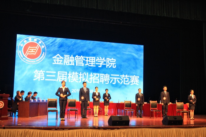 为提高我院毕业生的就业质量,实现优质就业,解决困扰学生的就业难题,实现与本校的良性互动,形成就业和实习的紧密连接,金融管理学院于5月8日在金葵花艺术中心举行了金融管理学院第三届模拟招聘示范大赛。本次比赛荣幸请到国家一级人力资源管理师、高级培训讲师、商务礼仪讲师杨瑞丽女士,人力资源管理师、高级培训讲师、认证企业培训师、认证测评师周利华先生,国家一级人力资源管理师、ICF国际认证行动学习促动师王茜女士,杭州联合银行培训师、综合柜员岗成天昱校友担任评委。参加本次大赛的有金融管理学院党总支书记熊秀兰,金融管理学院党总支副书记钱利安,金融管理学院团总支书记宋春旗,金融管理学院辅导员刘兆阳以及金融管理学院大一、大二学生。本次活动由徐宝珠主持,本次活动有学院团总支学生会EDI发展部主办。