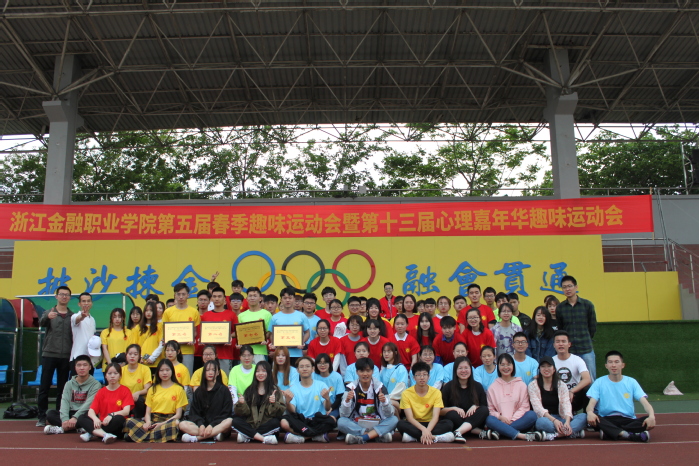 为展现当代大学生风采,激发学生积极参与体育锻炼、提高身体素质的兴趣。浙江金融职业学院于5月8号下午一点在华夏运动场举行浙江金融职业学院第五届春季趣味运动会暨第十三届心理嘉年华趣味运动会。金融管理学院的同学们积极参与本次比赛,为运动员们加油助威。