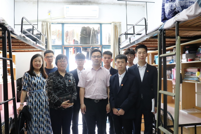 在班会结束后,郭福春副校长与学院师生一同前往结对桃李苑8幢414寝室。郭福春向学生们就完善寝室的各个方面做了悉心询问,例如:如何让寝室空间得以更充分的利用,从四人寝改造成六人寝做怎样的过渡才更合适等,勉励4位同学要勤奋学习、做好寝室卫生建设。师生一同研讨让寝室舒适度提升、让学生生活质量提升的方法,共同为建设美好校园生活谏言献策。