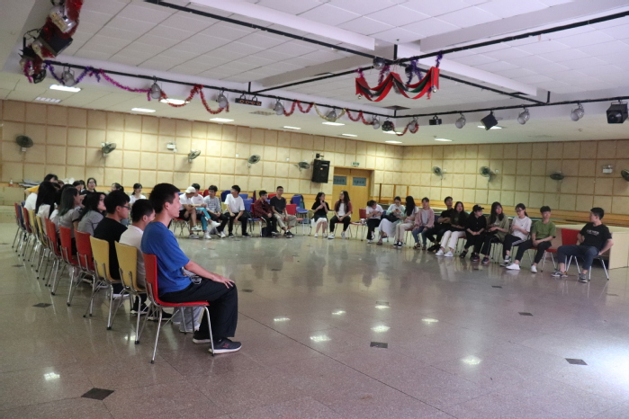 本次活动共分为三个部分,游戏的开始,学生代表被分为了五个小组。首先是热身活动“解手链”,这个项目十分考验组员彼此间的默契,需要两个人互相配合帮助。接下来的“记忆比拼”由各组成员轮流说出自己的名字,后一位说出前面几位同学的名字,这个活动不仅考验了成员们的记忆里还让成员们更快地认识彼此,拉近距离。