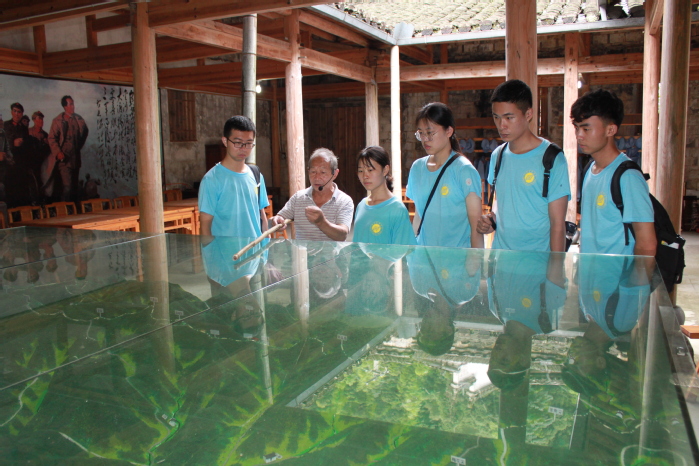 在支教的同时,实践团也开展了调研活动,通过实地调研让同学们深入了解社会的同时助力实践基地的建设与发展,更好地对队员们进行爱国主义教育,让队员们明白先辈建党立国的艰辛历程,珍惜现在的幸福生活。调研组的成员前往石屋坑村,在老村长胡润泉同志的详细讲解下了解了1935年秋至1937年初,中共皖浙赣省委在石屋坑一带进行的三年艰苦卓绝的游击战争的经过,并和退伍复员的战士张文海带领队员们参观了石屋坑红色纪念馆和中共皖浙赣省委旧址。参观过程中,队员们听老村长讲述了皖浙赣边游击区的种种往事,仔细感悟中共皖浙赣省委带领群众在斗争中所形成的“不畏艰险、无私奉献”的石屋坑精神。“石屋坑精神体现了中华民族的优良精神传统,值得同学们学习和铭记。
