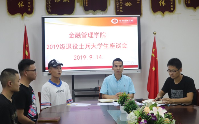 为了表示学院领导对新生退伍士兵的关切与问候,金融管理学院于9月14日在8218会议室召开金融管理学院2019级退伍士兵新生座谈会。出席本次座谈会的领导是金融管理学院党总支副书记钱利安、学院学工办副主任宋春旗,全体2019级退役士兵大学生。