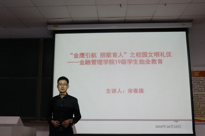 为了规范2019级新生的校园文明礼仪、加强党建方面知识,金融管理学院于10月15日下午六点在8119教室开展了以文明礼仪教育和党建教育培训教育为主题的始业教育。本次培训会由金融管理学院团总支书记宋春旗主讲。