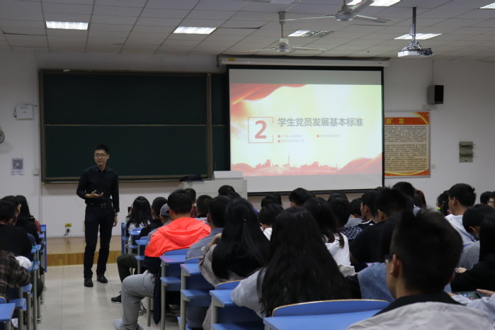 随后,团总支书记宋春旗进行党建方面的教育。讲座分为五个部分:一、学党史知党情;二、学生党员发展基本标准;三、手续及入党材料;四、发展学生党员流程;五、学院学生党建发展。在团总支书记宋春旗详细的解说中,新生们逐渐明白了什么是共产党、入党的重要性以及如何入党。团总支书记宋春旗还对新同学们提出了几点要求:一、“爱祖国,听党的话,跟党走”今年是建国七十周年,祖国的繁荣昌盛离不开年轻的一代,作为祖国的新鲜血液应走在时代的前列;二、爱学习,锤炼品德行为,努力掌握科学知识和专业技能以及思想道德方面的学习和学习技能;三、爱劳动,劳动能促进德、智、体、美全面发展,青年学子应以劳动为荣,脚踏实地,真学实干。