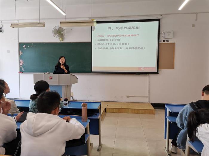 国际金融专业主任李敏老师作了主题为“学好国际金融专业、走向人生美好未来”的讲座。她从四个方面为同学们详细介绍了专业的情况:一是国金专业的基本情况,从国金专业的发展历程、人才培养目标、人才培养定位做了详细的解说,希望同学们朝着高素质技术技能型人才方向而努力;二是国金专业具备的资源优势,希望同学们能借助有利条件努力提升自己的专业能力和职业素质;三是对标优秀学长,希望同学们成为职业素质高、英语应用能力强、国际化视野广、综合能力强的人才;四是明确发展方向,启发同学们对于未来的发展明确目标、早做选择、落实行动。