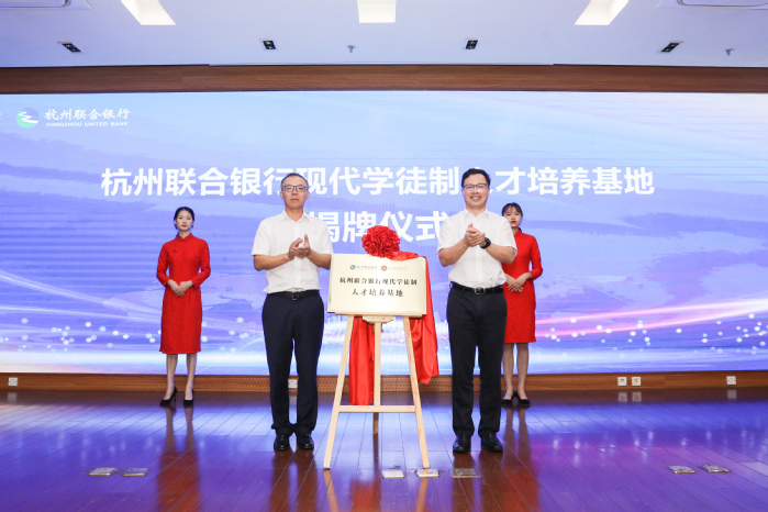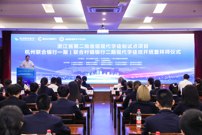 9月25日上午,由浙江金融职业学院、杭州联合银行、浙江金融职业教育集团共同主办,金融管理学院承办的浙江省第二批省级现代学徒制试点项目——杭州联合银行一期、联合村镇银行二期现代学徒班开班暨拜师仪式在汇丰大厦汇通厅隆重举行。我校副校长郭福春、杭州联合银行总行党委副书记、副行长成伟绩、杭州联合银行总行人力资源部总经理周凌霞、运营管理部许云燕总经理、村镇银行管理部总经理周荣华等领导与银行代表,我校教务处、合作发展处、金融管理学院负责人及教师代表,以及“联合学徒班”、“联合菁华学徒班”全体同学共计90余人出席本次大会。