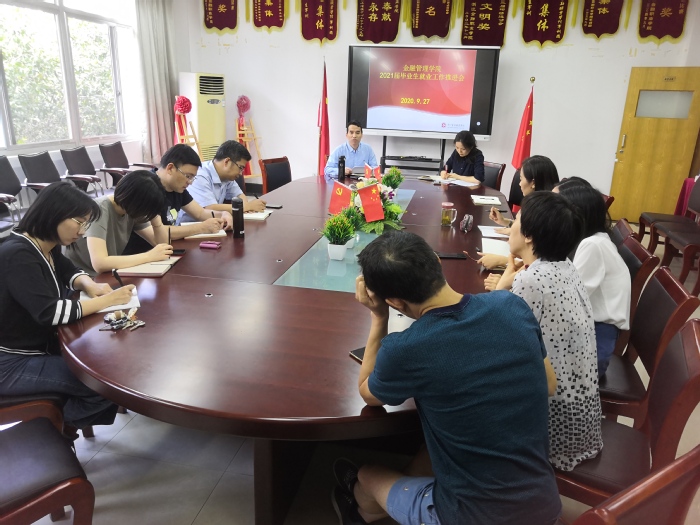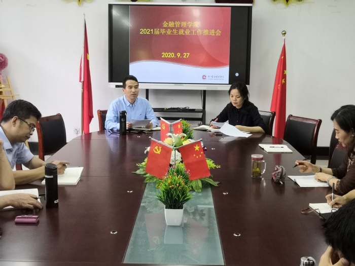 为更好的做到精准就业,尽力帮助学生实现毕业即就业的良好状态,金融管理学院于2020年9月27日下午1点30分在8218会议室召开2021届毕业生就业工作推进会。金融管理学院党总支书记钱利安、党总支副书记吴小燕以及2021届全体班主任、辅导员参加会议。会议由党总支书记钱利安主持。