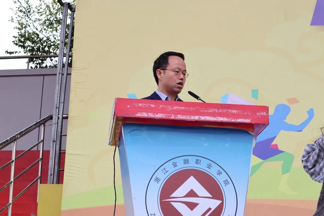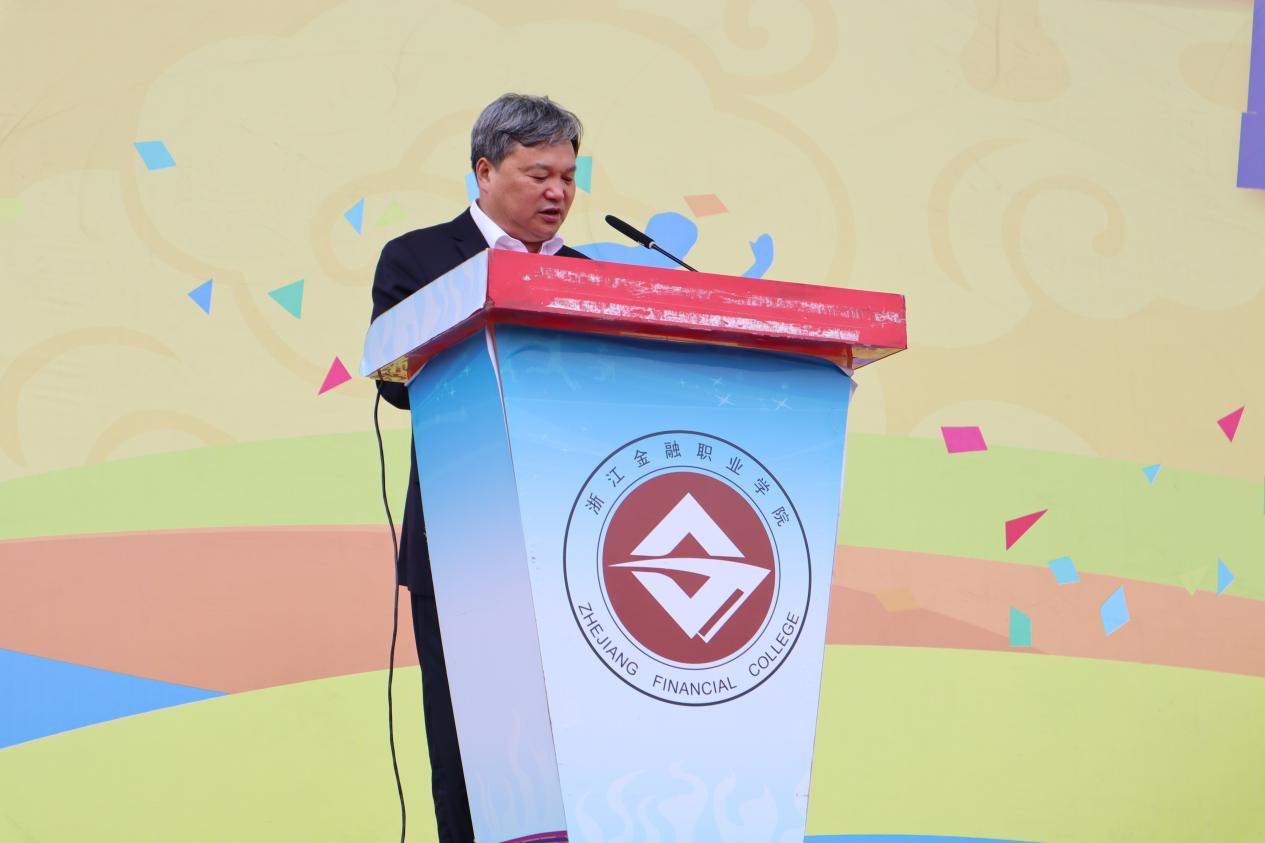 学校党委书记周建松致开幕词并宣布,浙江金融职业学院第二十一届学生田径运动会开幕。