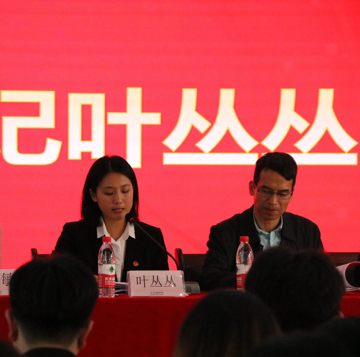 接着,由校团委书记叶丛丛讲话。叶书记由衷地对一直从事金融管理学院团学工作的领导、老师以及学生干部表示感谢和问候。其次,她提到金融管理学院团学工作是学校团工作重要的组成部分,对过去一年中金融管理学院打造的“一节一赛一团一班”的品牌活动以及暑期社会实践给予肯定。此外,借助这次会议,叶书记还与同学们共勉几点想法:一、进一步加强思想引领,牢记青春使命。作为团学组织成员,要时刻注意自己言行举止,提高思想意识,做好表率。坚持从同学中来,到同学中去,牢记为学生服务的宗旨;二、进一步解放思想,具备全局观念。希望新一届团学干部能够拓展工作思维,具备全局观念,在日后不断涌现人才,加强人才输送,搭建院校的互动平台;三、进一步转变工作作风,提升自身服务力。希望同学们切实发挥好组织职能,摸清同学们所思所想,脚踏实地,以一颗热忱之心做实事,助推学生成长,提升自身能力。