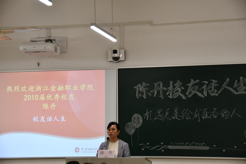 首先,陈丹校友表达了她在大学期间无法进入学校订单班的遗憾,之后,她通过自身努力从银行柜员晋升到业务管理员。她谈及大学就是进入社会前的一个跳板,一定要做好充分的准备,积极考证。