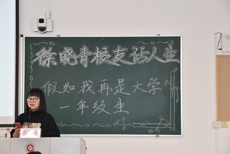 首先,金婧老师为优秀校友徐晓青颁发聘书,肯定她在金融行业取得的优异成绩。在热烈的掌声后,徐晓青校友向同学们讲述了十年间的工作经历,并展示了她在十年工作生涯中取得的成绩。