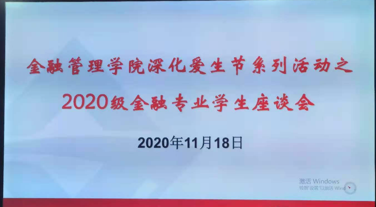 秋风送爽 ,丹桂飘香,又是一年流金岁月,又是一年收获季节。伴随着习习的秋风,我们迎来了本学期2020级金融专业学生座谈会。本次会议于11月18日下午在8218会议室举行。出席本次座谈会的有金融管理学院院长董瑞丽,金融管理专业教师金晓燕、金婧、隋冰、徐海洁、吴沈娟、张旭东。参加会议的学生代表为2020级金融专业大一各班班长、学习委员。本次座谈会由金融教研室副主任金婧主持。