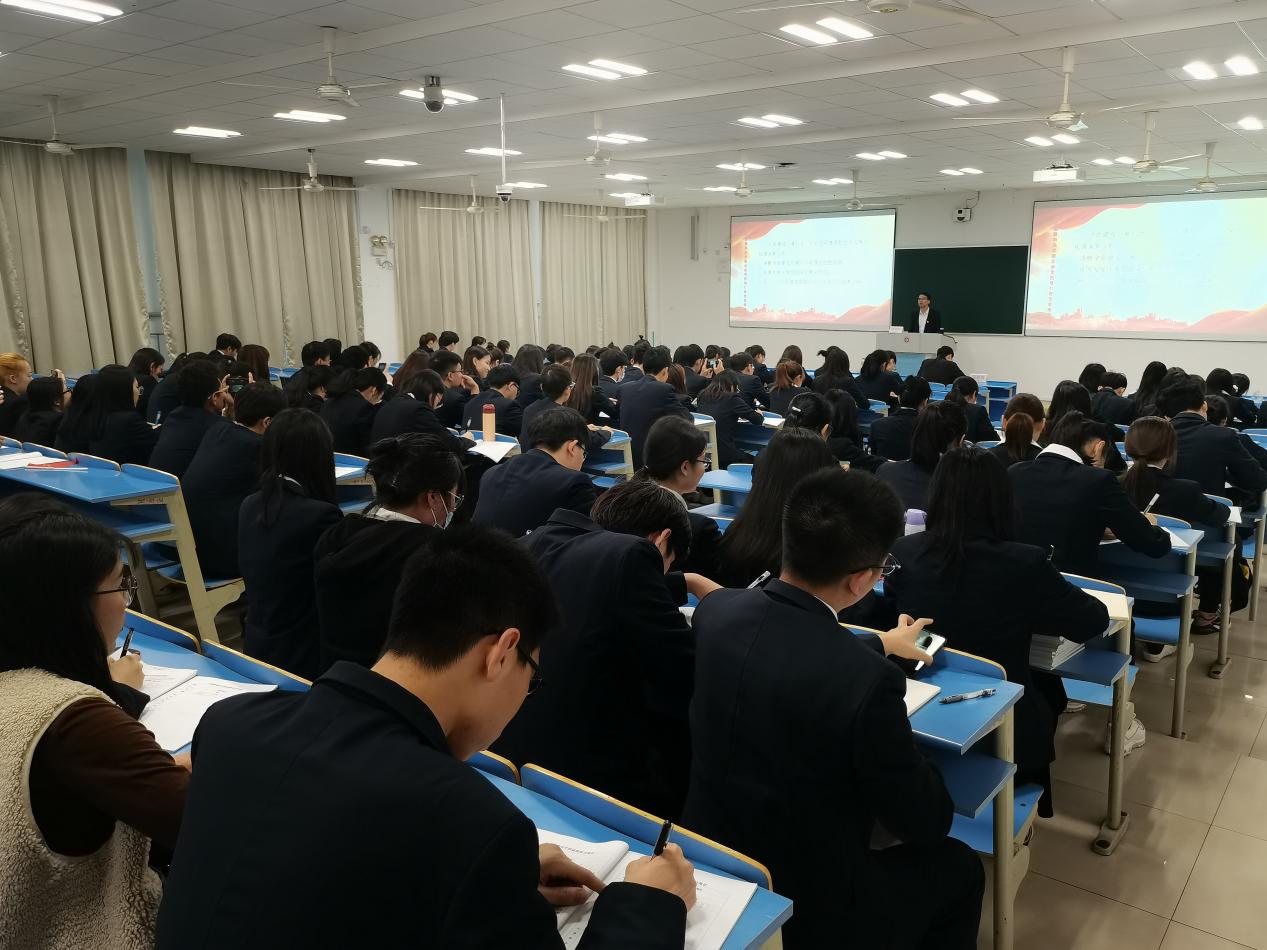 金融管理学院在11月19日下午在8219教室举行十九届五中全会精神学习专题学生党课暨第51期入党积极分子培训,本次主讲人是金融管理学院党总支书记钱利安书记,本次专题党课由学工办副主任宋春旗老师主持。本次的参加人员有金融管理学院全体学生党员、第51期入党积极分子。