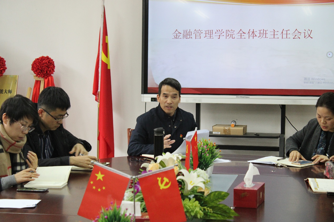 在即将进入新一年的12月,为更好确保期末工作有条不紊地开展。金融管理学院于12月9日在8218会议室举行金融管理学院本学期的全体班主任会议,出席本此会议的有金融管理学院党总支书记、副院长钱利安,金融管理学院党总支副书记吴小燕,金融管理学院学工办副主任宋春旗,金融管理学院全体班主任以及辅导员。