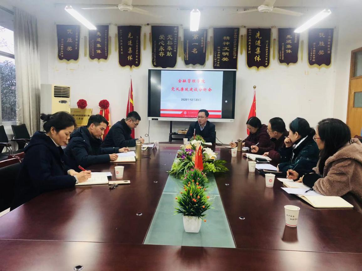 会上,金融管理学院党总支书记钱利安本着突出问题导向、重点查摆问题,代表学院班子成员作2020年党风廉政建设分析报告,认真总结清廉学院、履行“一岗双责”、制度执行与监督管理等情况,分析党风廉政建设中的薄弱环节,排查分析党风廉政风险点,研究制定下一步整改措施。随后,院党政班子全体成员结合各自分管工作就落实全面从严治党、党风廉政建设执行及整改工作进行逐一汇报。