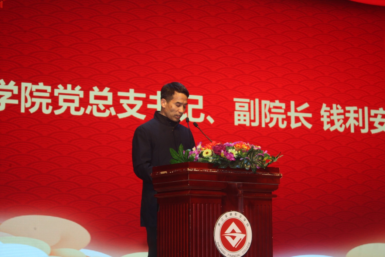 金融管理学院党总支书记、副院长钱利安,总结了过去一年学生工作所取得的成绩,表示2020年因新冠疫情的影响,教学、生活及工作受到诸多干扰,但在学校党委的正确领导下,金融管理学院坚定正确的政治方向,高举习近平新时代中国特色社会主义思想伟大旗帜,积极践行“立德树人、以生为本”的育人理念;认真贯彻德智体美劳全面发展的教育方针,围绕“双高校”建设中心任务,深入开展“金鹰引航 朋辈育人”项目,推进“三全”育人,各项工作均取得了令人可喜的成绩。顺利完成招生791人,2020届就业率达98.49%,获校就业先进集体称号;2020年有426人获奖学金,其中3人获国家奖学金,40人获省政府奖学金、89人获国家励志奖学金等;近百名学生获得各类职业资格证书,有245人次获得素质拓展奖学金;金融176班刘致伟、方颖抗疫防疫事迹被多家媒体作为典型进行转载报道等。展望即将到来的2021年,全体教师将以立德树人为根本,努力培养适应新时代经济社会发展需要的高素质技术技能型金融专业人才,为学校扎实推进 “双高”建设和打造中国特色高职教育重要窗口而作出应有的贡献!