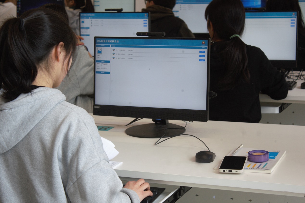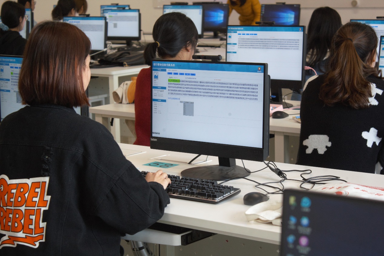 举行的第一项比赛项目是中文单字输入,随着一声令下,选手们迅速登录银行考核系统,教室内顿时只剩敲击键盘的声音。选手们的手指犹如一只只在湖面上跃动的蜻蜓,一双手在键盘上抬起又落下,轻快而敏捷。
