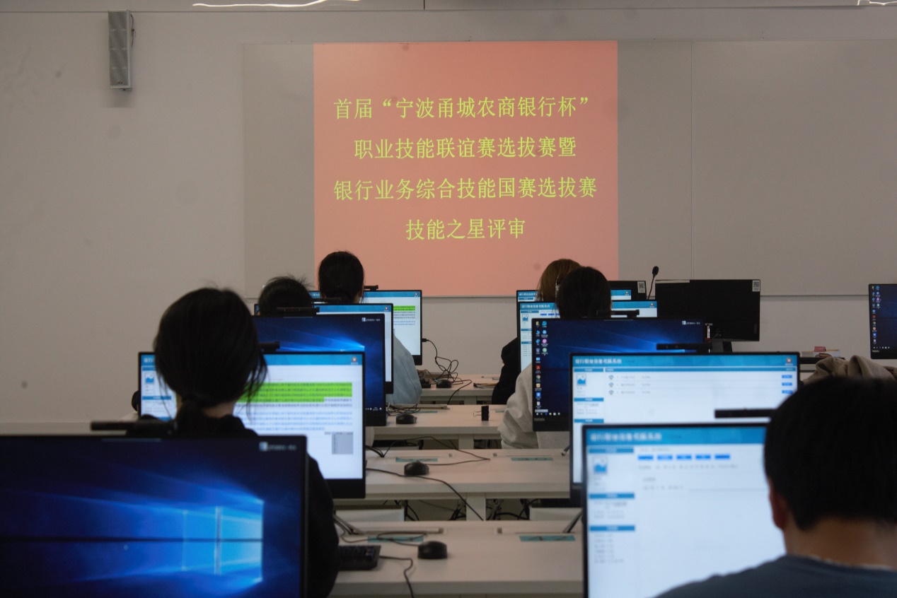 为大力弘扬工匠精神,进一步提高宁波甬城农村商业银行员工和浙江金融职业学院学生的职业技能水平,展示良好的精神风貌。3月24日下午一点半,“宁波甬城农商银行杯”业务技能选拔赛在金通201准时举行