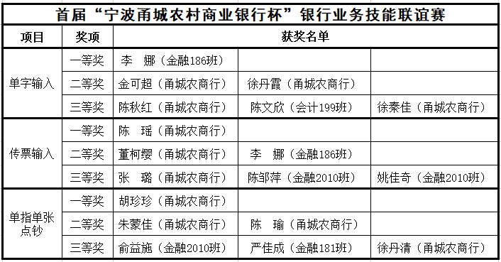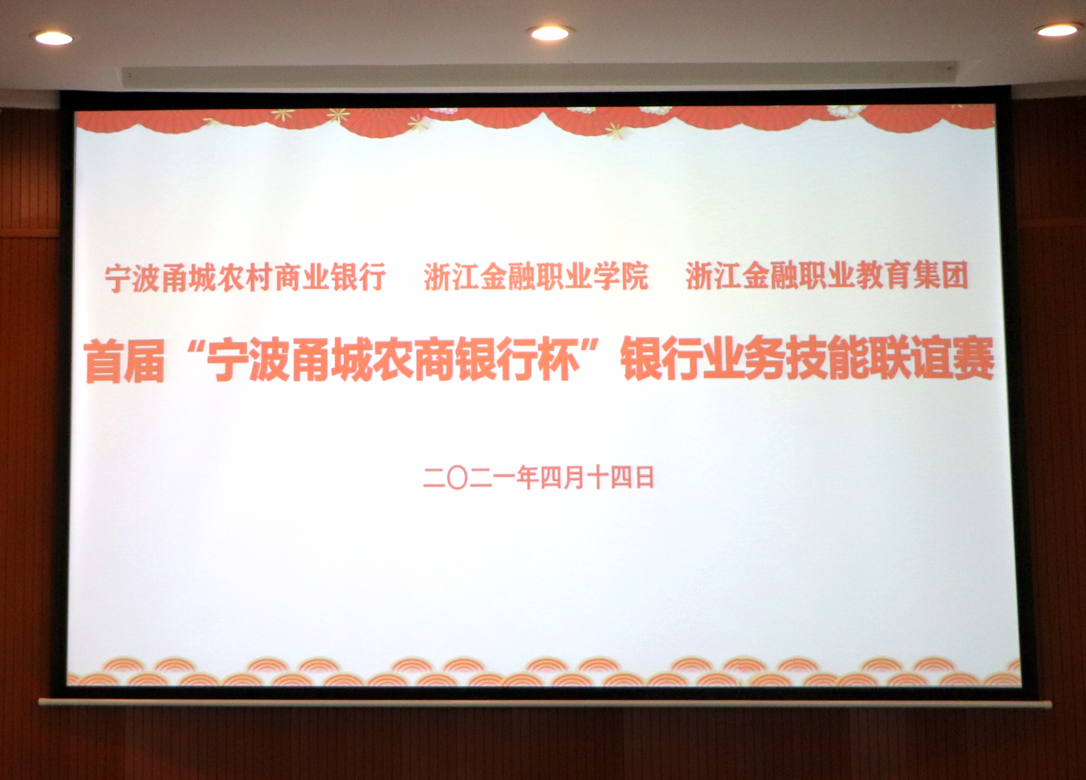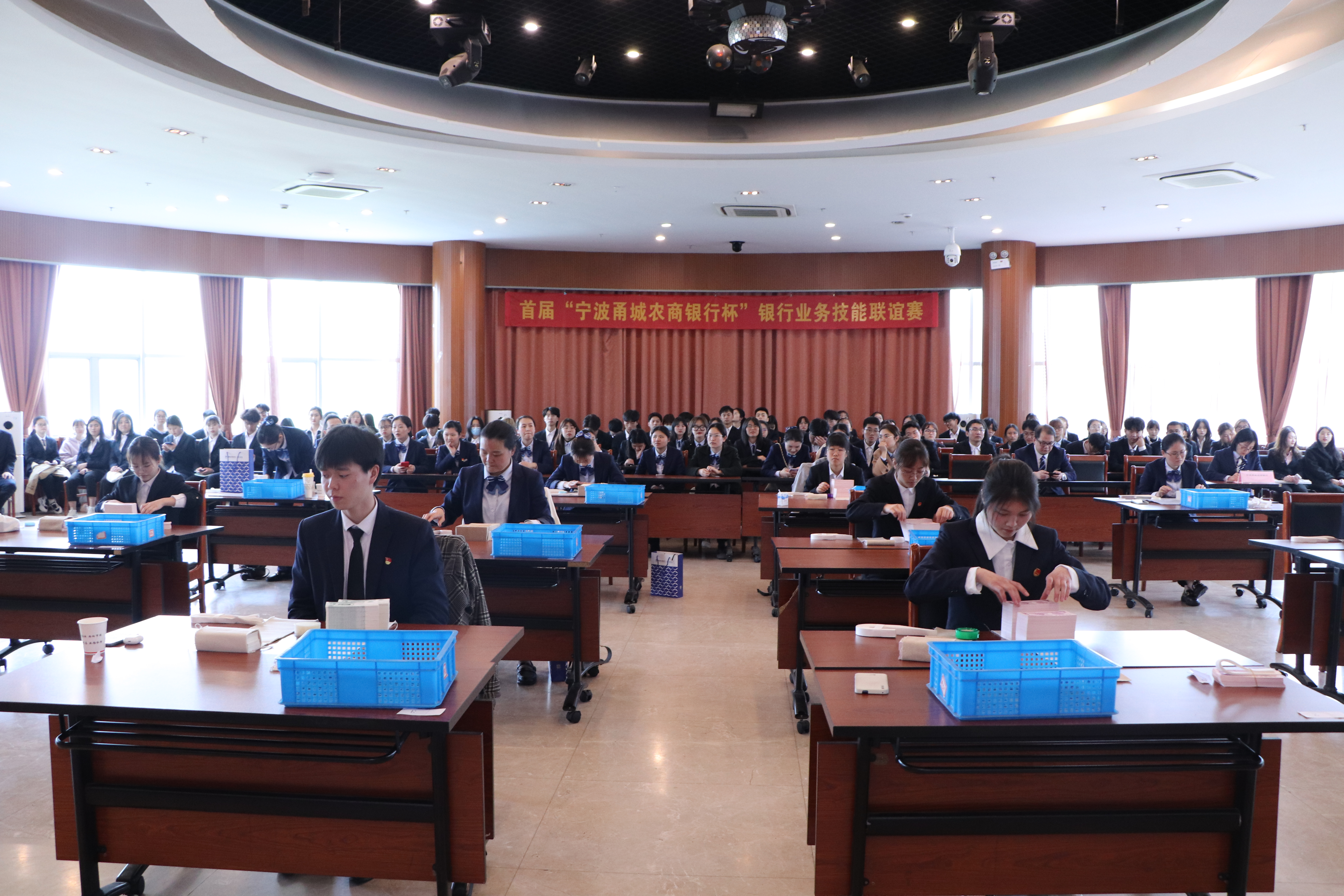 为大力弘扬工匠精神,进一步提高宁波甬城农村商业银行员工和浙江金融职业学院学生的职业技能水平,展示良好的精神风貌,浙江金融职业学院于4月14日下午在汇丰大厦三楼汇彩厅举办首届“宁波甬城农商银行杯”银行业务技能联谊赛。出席本次联谊赛的领导和来宾有浙江金融职业学院党委委员、副校长陈云涛,银领学院党总支书记、常务副院长邵月花,金融管理学院院长董瑞丽,银领学院副院长方秀丽,宁波甬城农村商业银行行长孙丽丽,副行长张军,财务会计部总经理周鸿秉,人力资源部总经理童颖男,副总经理陈泱,财务会计部总经理助理林琳,以及30名参赛选手、银领学院技能教研室全体老师、各二级学院、校技能协会等学生代表。