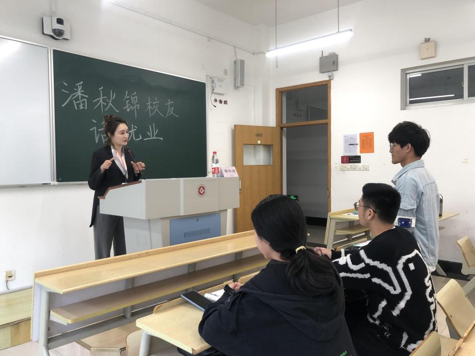 为帮助金融学子了解就业形势,在思想、行动上早做准备。金融管理学院邀请优秀校友返校,于4月14日下午在8号恒丰教学楼召开就业专题讲座。本次讲座主讲人国金082班潘秋锦校友,国金082班杨兴武校友、国贸081班季丽华校友、学院19级、20级学生代表参与此次讲座。