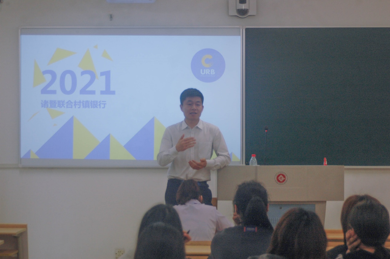 第二,村镇银行的发展历程与未来前景。俞杨龙校友向同学们介绍了联合系村镇银行的发展历程,展示了联合系村镇银行所取得的辉煌成绩和未来的广阔发展前景。同时,他还建议同学们抓住在大学的时间考取各类资格证书、参加各类比赛竞赛,一方面可以有效提升自身的综合能力与竞争力,另一方面工作后业余的时间和精力有限,考证的难度反而提升了。