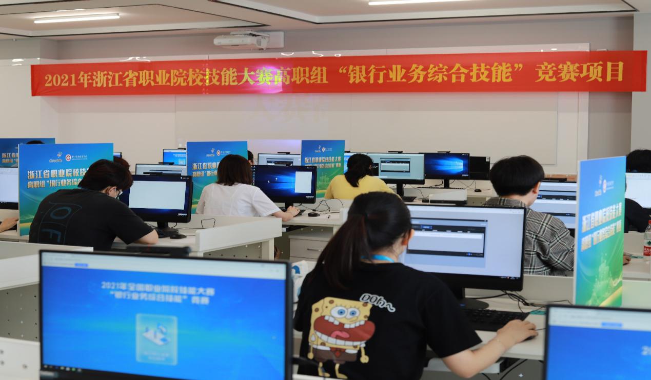 5月8-10日,由浙江省教育厅主办、浙江金融职业学院承办、深圳智盛信息技术股份有限公司与深圳典阅科技有限公司协办的浙江省2021年职业院校技能大赛高职组“银行业务综合技能”赛项在我校举行,来自省内的23所院校44支队伍参赛。学校副校长郭福春、辽宁金融职业学院副校长孙迎春及我校相关二级学院领导出席赛项开幕式。