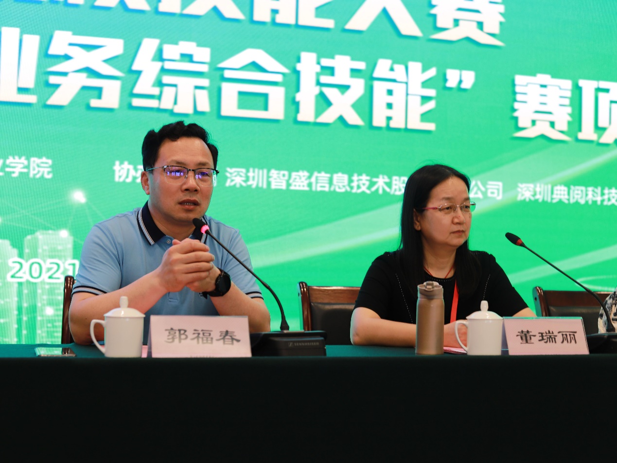 郭福春首先代表学校热烈欢迎参加本次赛项的各参赛队伍师生。他指出日前召开的全国职业教育大会特别强调“岗、课、赛、证”综合育人体系,“银行业务综合技能”赛项不仅是对参赛队伍学习成果的检验,也是对各个职业院校教育教学的全方位检验,以大赛作为风向标,通过比赛对日常教育教学进行全方位的评价。他希望通过此次大赛,将“岗、课、赛、证”综合育人体系有机结合,将职业岗位要求、课程改革要求职业技能等级证书要求有机体现。