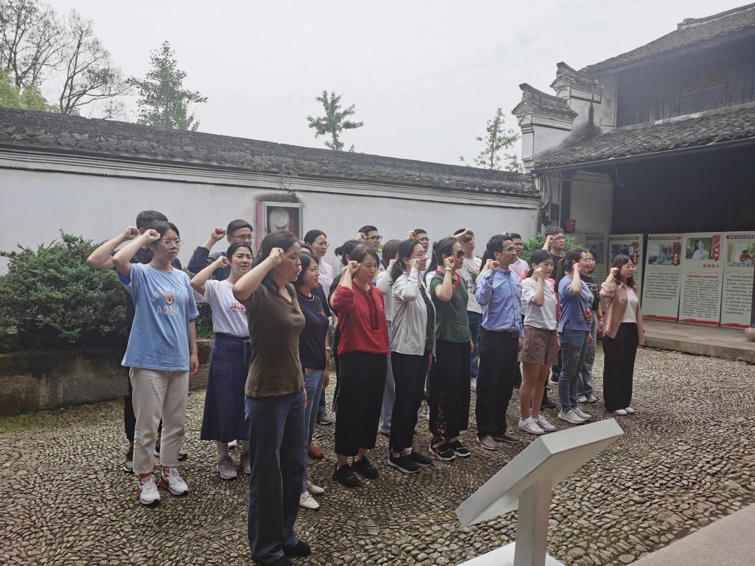 在浙东区党委旧址,金融管理学院党总支副书记吴小燕带领全体党员重温入党誓词、重忆入党初心,“我志愿加入中国共产党……随时准备为党和人民牺牲一切,永不叛党。”铿锵恢宏的誓词,一字一句,体现了党员同志们对中国共产党的无限忠诚,进一步坚定了全体党员的入党使命与奋斗初心。