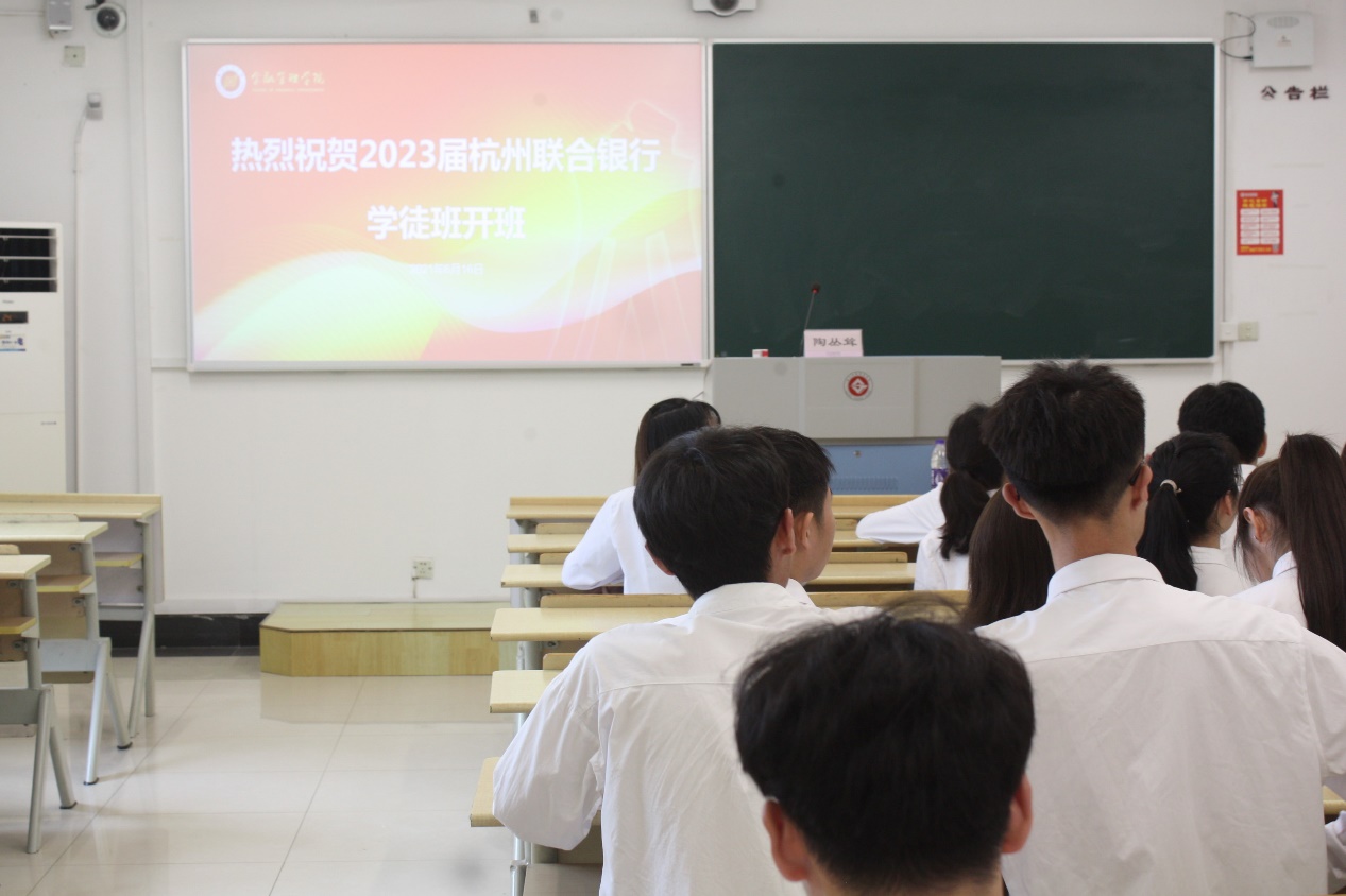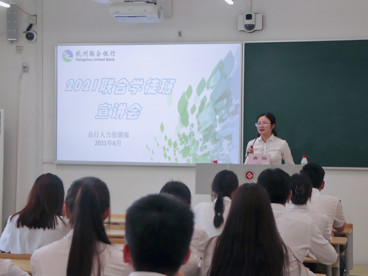 为让联合学徒201班的同学们加深对现代银行学徒制以及杭州联合银行的认识与了解,更好实现预就业。6月16日下午,金融管理学院在8210教室举行2023届联合学徒201班开班仪式,本次开班特邀杭联总行人力资源部经理唐怡进行主讲,杭联人力资源部经理陶丛耸以及联合学徒201班全体学生参加本次仪式。