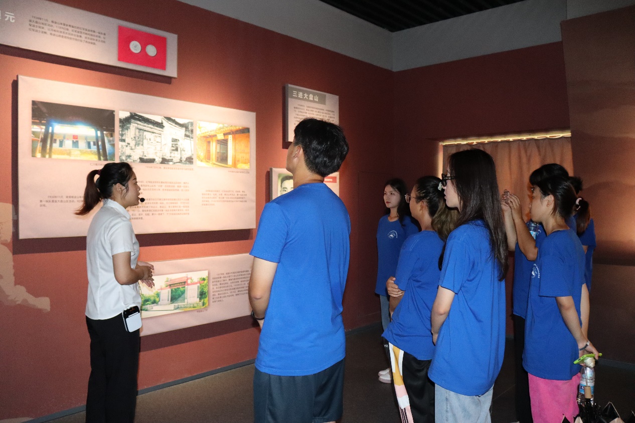 实践团于2021年7月12日上午,参观磐安县中国工农红军挺进师纪念馆,通过解说员的讲解,队员们了解到纪念馆分为三层,即为三次挺进的过程。这次参观也让队员们牢牢谨记习近平总书记的话:“要把红色资源利用好、把红色传统发扬好,把红色基因传承好。”