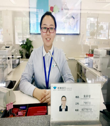 朱籽睿,金融119班,中共党员,2014年毕业后通过学校订单班进入杭州银行金华分行工作,现为杭州银行义乌支行主办会计。工作期间荣获杭州银行十佳柜员、杭州银行技能比赛团体第四等荣誉。