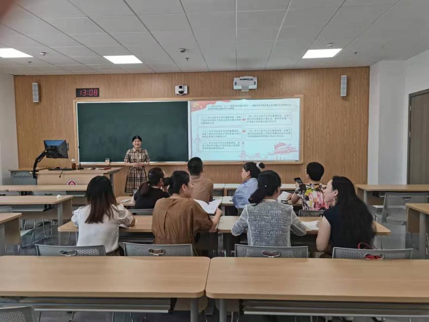 为深入学习贯彻习近平总书记“七一”重要讲话精神,引领支部党员教师深刻领会和把握讲话的重大意义、丰富内涵、核心要义、实践要求,9月22日,国金党支部书记朱莉妍为全支部党员教师上专题党课。