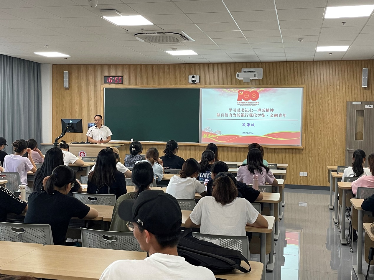 为深入学习贯彻习近平总书记在庆祝中国共产党成立一百周年大会上重要讲话精神,结合党史学习教育,引导学生从党史中汲取理论智慧、赓续前行力量。9月27日下午,金融管理学院副院长凌海波为联合学徒201、联合菁华201全体学生讲授专题党课。