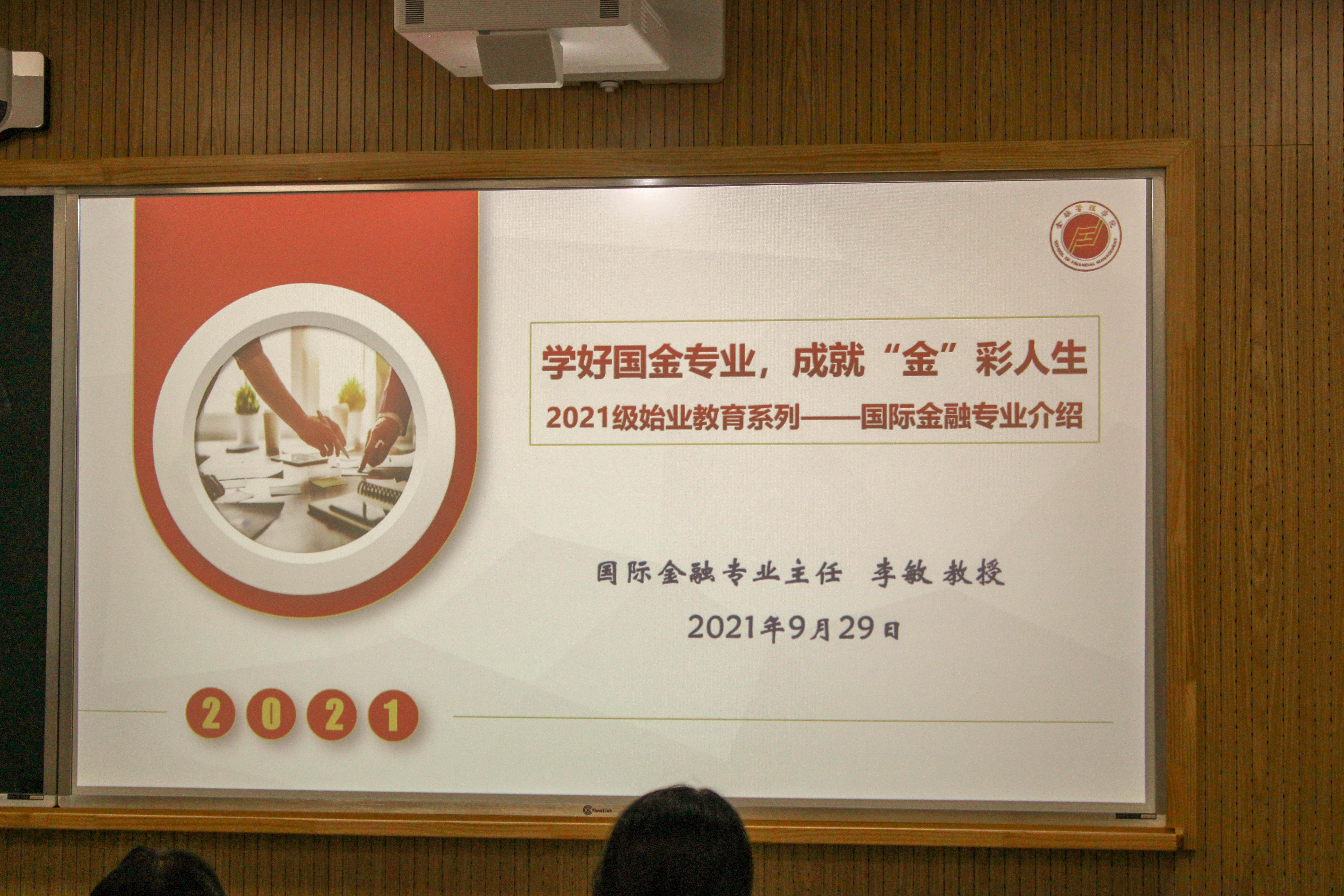 为使21级国际金融专业新生更加全面的了解专业情况,把握学习方向,明确学习要求,从而进行合理的学业规划,金融管理学院于9月30日下午在泰隆302教室举办了以“学好国金专业,成就‘金’彩人生”为主题的国际金融专业新生始业教育,本次讲座由国际金融教研室主任李敏教授主讲,国际金融专业教研室全体教师和88位全体新生参加了本次讲座。