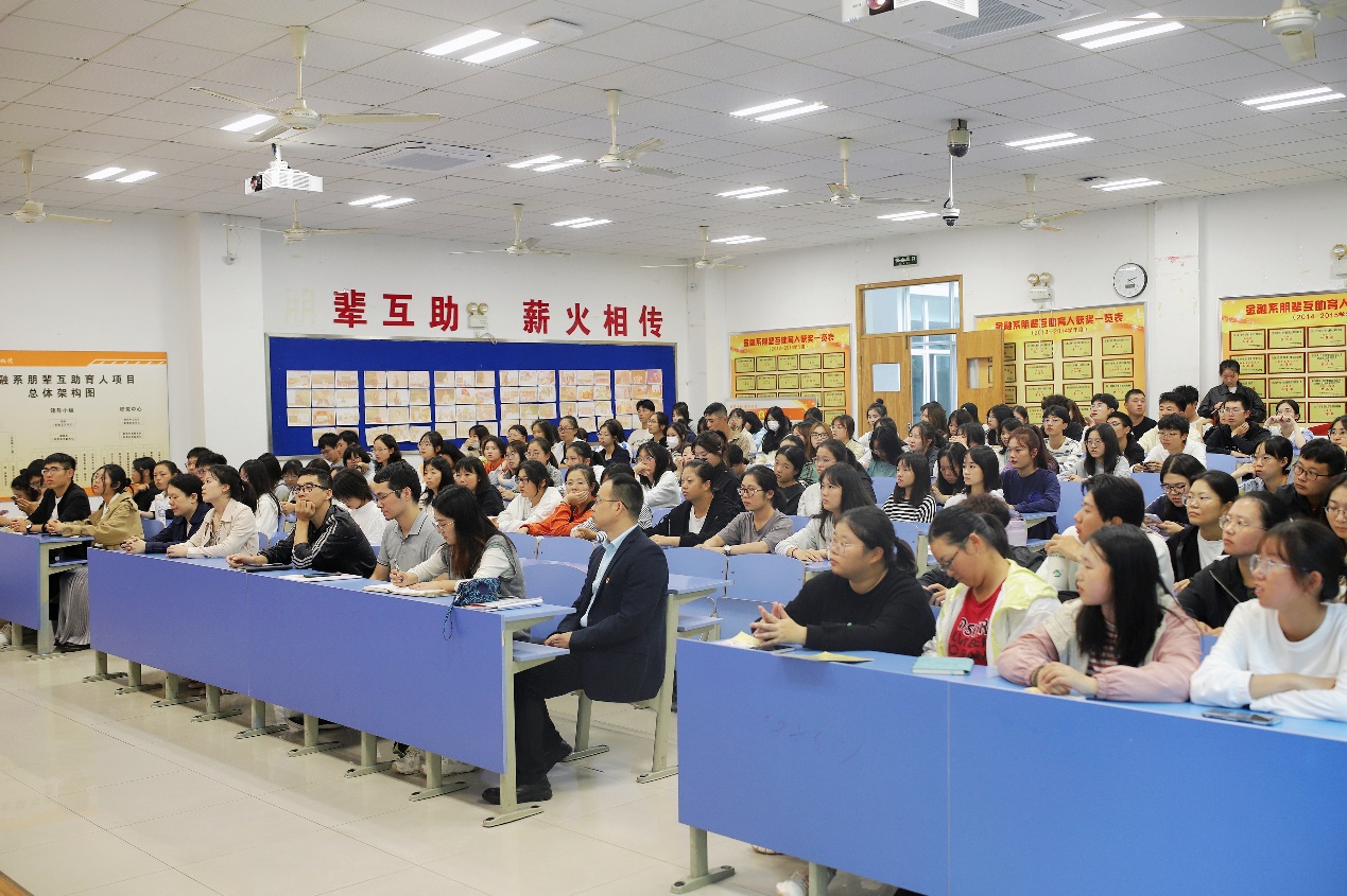 其次,他分析了近年农金专业新生的录取分数、生源类别、性别比例。农村金融专业招生分数持续提高,分差逐年缩小。随后,他结合专业人才培养方案为新生设立了各学年的基本目标。要求各位同学在第一学年要遵守校规校纪,重视智育及体育、技能达标、加入校内组织、通过英语等级考试、争取评奖评优;第二学年需重视专业课程学习、通过技能鉴定、考取职业资格证书、提升职业素质和能力、参加订单班面试;第三学年着力于应聘工作、做好顶岗实习和毕业设计。
