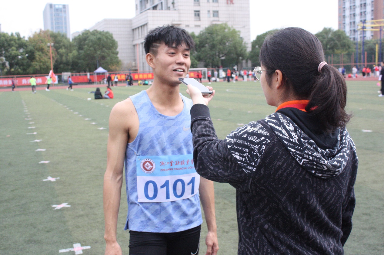 金秋十月,桂花飘香。青春的号角已然吹响,运动的旋律正在进行,奔腾的热血不断翻涌。在这个秋高气爽的季节,浙金院迎来了第二十二届学生田径运动会。10月28日下午,新媒体中心有幸采访到了金融管理学院院长董瑞丽,金融管理学院辅导员傅宁宁,李朝奔,运动员代表金融201班黄国能。