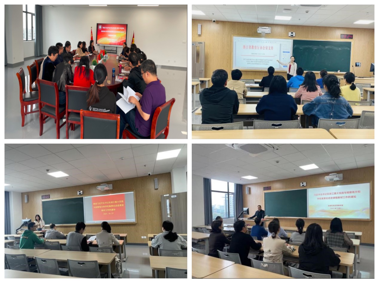10月27日下午,金融管理学院金融服务与管理、国际金融、农村金融、金融科技应用教研室在泰隆大厦分别组织召开了“推进习近平总书记在浙江重大实践与视察地方和学校重要论述进课程教材”专题教研活动。教研室全体教师参加,会议由各教研室主任主持。