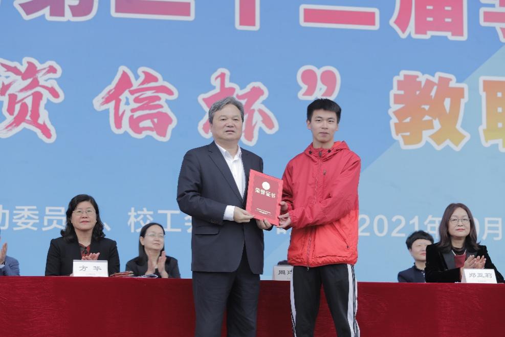 随后,浙江金融职业学院副校长陈云涛宣读关于表彰“金院阳光学子阳光运动功勋章”的决定,并由周建松书记为获奖者颁奖。