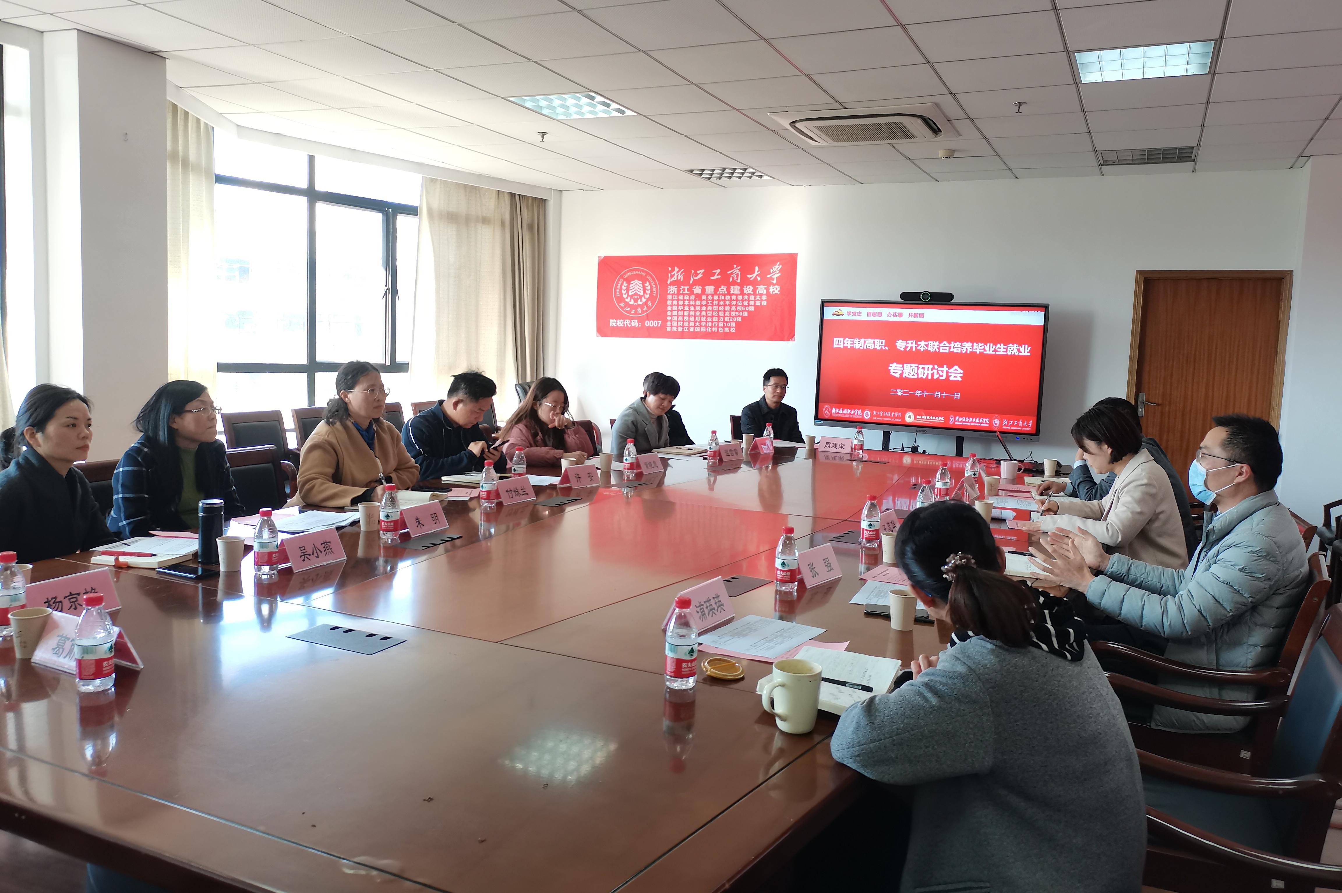 2021年11月11日,浙江工商大学专升本联合培养毕业生就业工作专题研讨会在浙江工商大学下沙校区顺利召开。学校招生就业处处长朱明、学院党总支副书记吴小燕参加会议。会议由浙江工商大学招生与就业指导处副处长刘静主持,浙江工商大学招生与就业指导处处长王忠华出席会议并讲话。