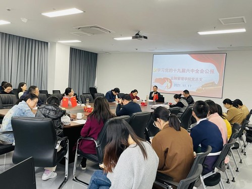 中国共产党第十九届中央委员会第六次全体会议于11月8日至11月11日在北京召开。金融管理学院党总支组织师生党员于11月12日上午在泰隆718会议室集中收看中国共产党第十九届六中全会视频,并于11月17日下午组织全体教师党员在泰隆718会议室再次学习中国共产党第十九届六中全会精神。金融管理学院全体党员同志参加会议,会议由金融管理学院党总支书记钱利安主持。