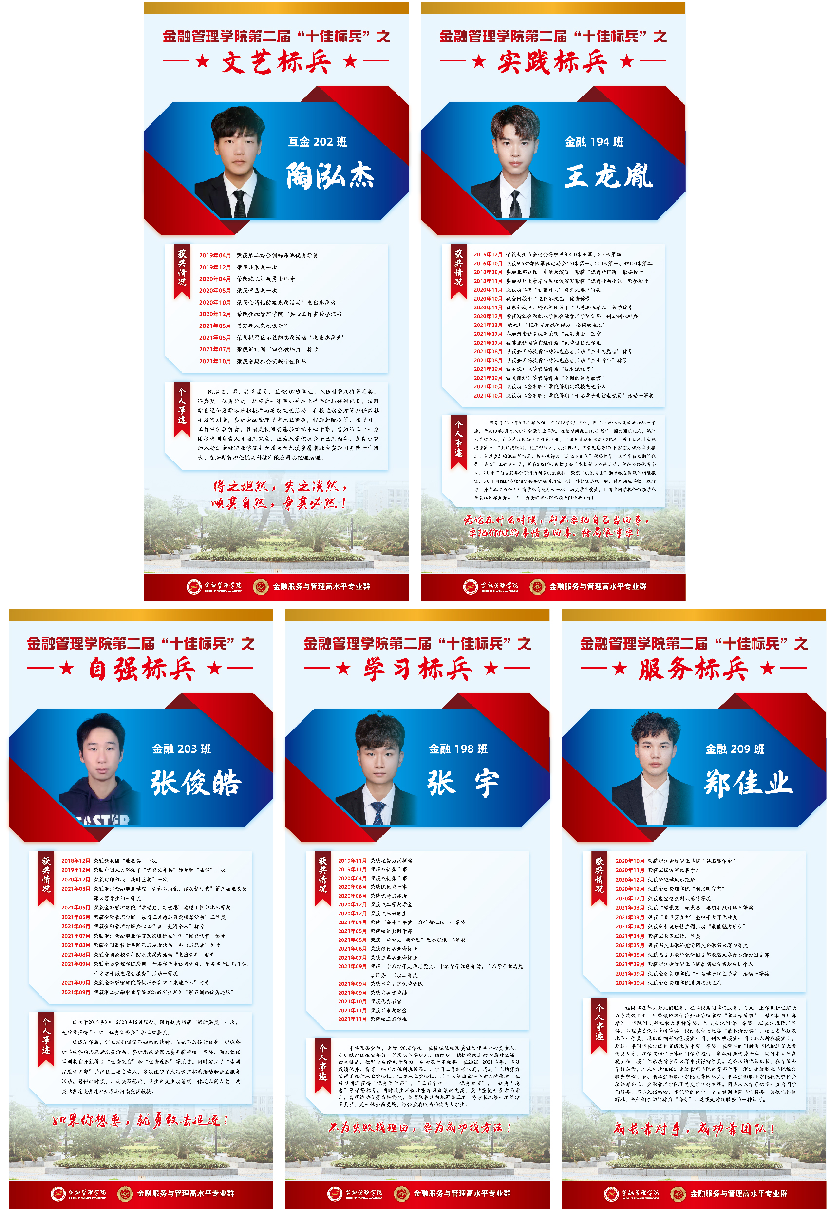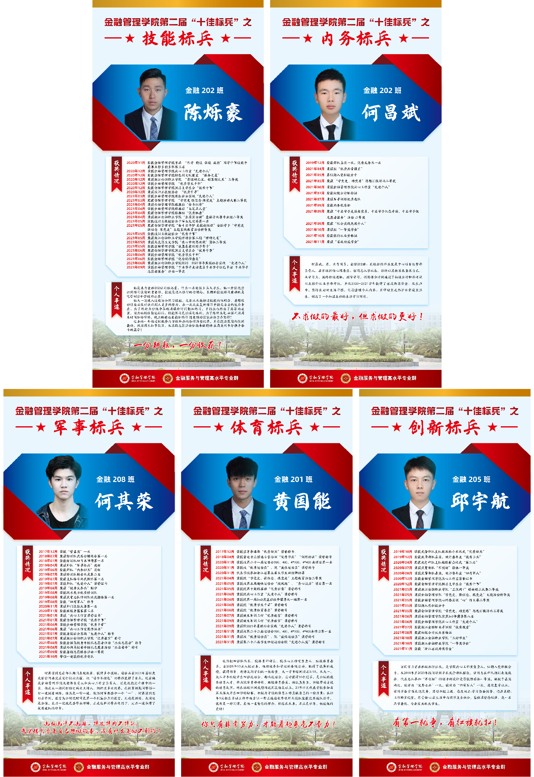 为深入学习宣传贯彻习近平新时代中国特色社会主义思想和贯彻学习党的十九届六中全会精神,不断践行社会主义核心价值观,进一步树立和宣传退役士兵大学生中的先进典型,用典型事迹感召和激励全体学生勤奋学习,全面发展,展示新时代大学生的精神风貌,浙江金融职业学院金融管理学院启动第二届“十佳标兵”评选活动。