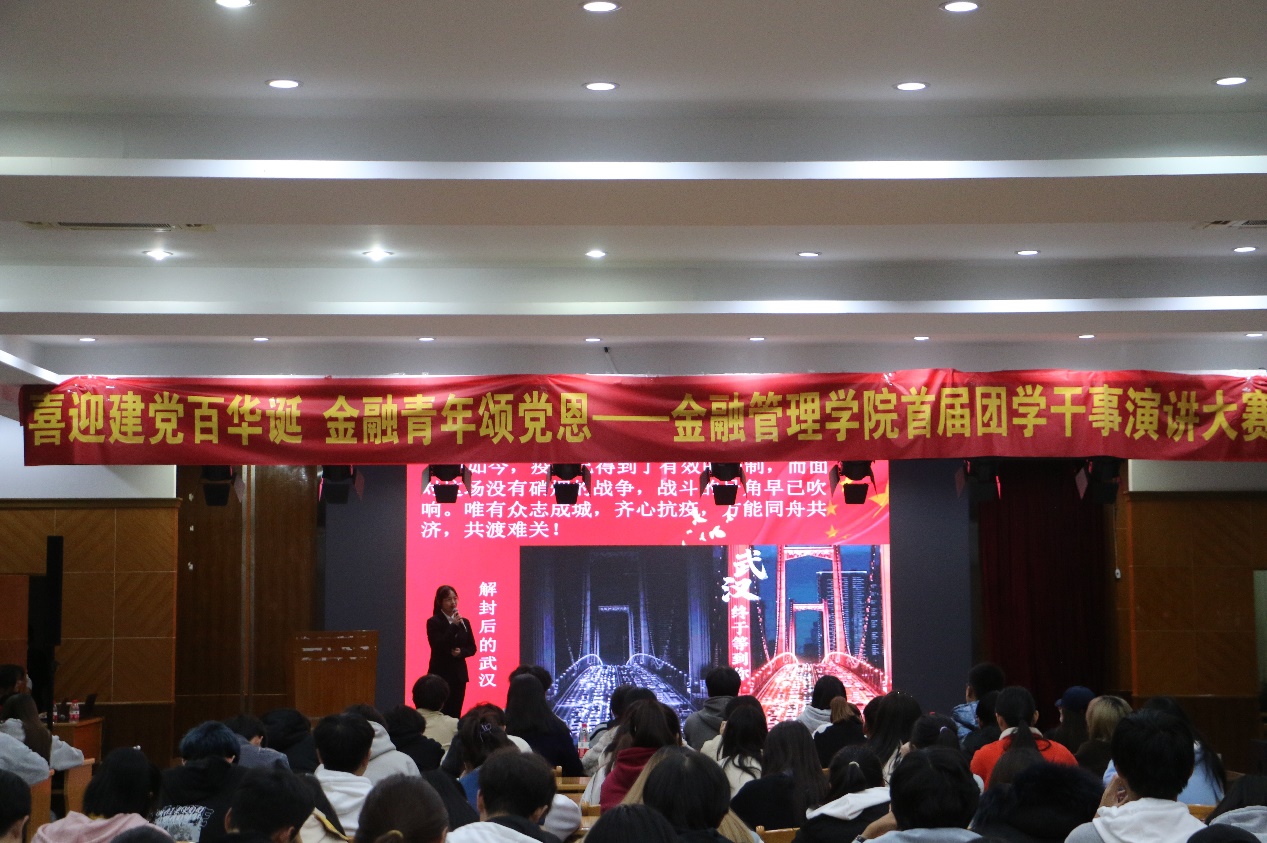 为引导青年学生学党史、知党史、热爱党、感悟党的光辉历程,传承党的优良传统,金融管理学院于11月21日在诚信讲学堂举行“喜迎建党百华诞 金融青年颂党恩”首届团学干事演讲大赛暨启航班系列活动。金融管理学院团总支副书记余继超、林巧蝶、张秋韵,学生会执行主席池一鸣、史柳青以及各二级学院团总支副书记参加本次比赛。本次比赛由陈铮铮主持。